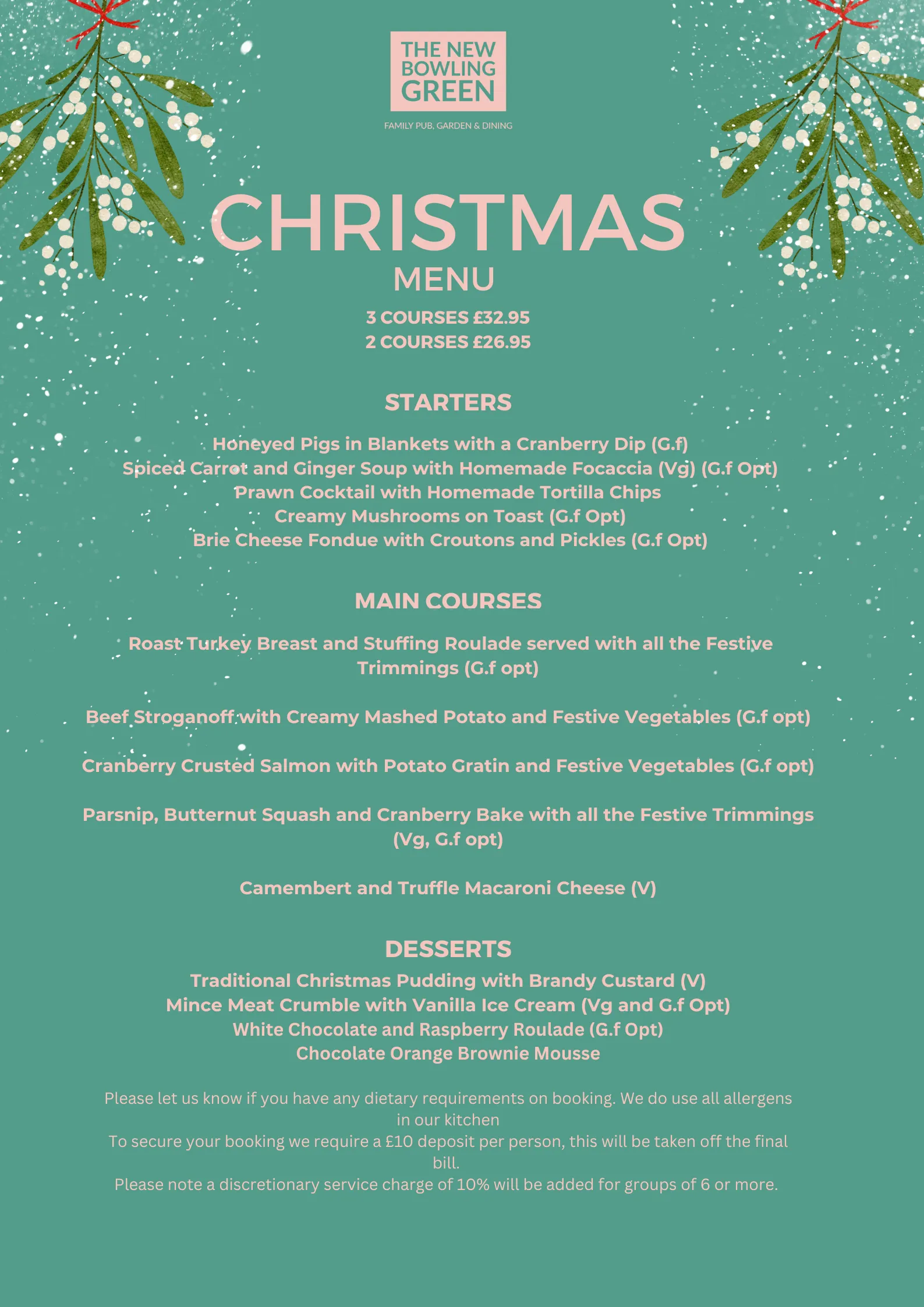 Join us this festive season for a delicious Christmas menu filled with seasonal flavours and classic favourites. From traditional roast turkey to indulgent desserts, enjoy 2 courses for £26.95 or 3 courses for £32.95. Book your table today and make this Christmas one to remember!